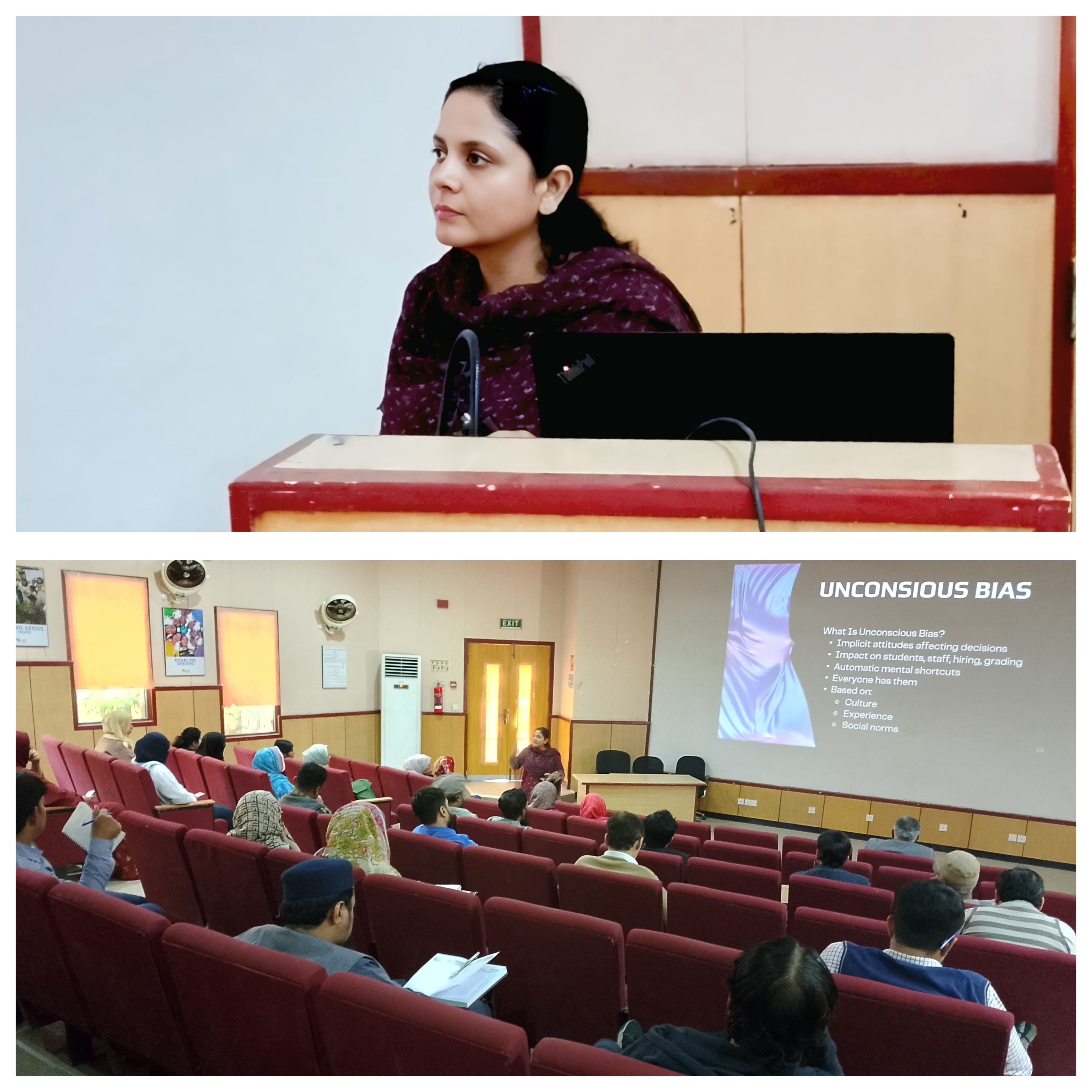 A training programme on “Diversity, Equity & Inclusion (DEI)” was arranged on January 15, 2026. Training was conducted by Dr. Sundus Ali, Associate Professor, Department of Telecommunications Engineering. On campus scenarios were highlighted and challenges faced by students, faculty, and staff, followed by strategies for fostering equitable learning and working environments. The training covered inclusive policies,accessibility considerations, gender sensitivity, and fair decision-making in academia. The session concluded with an action-planning exercise, which enabled participants to identify practical steps to strengthen EDI within their departments and administrative units. Session was attended by faculty members and officers of the university.