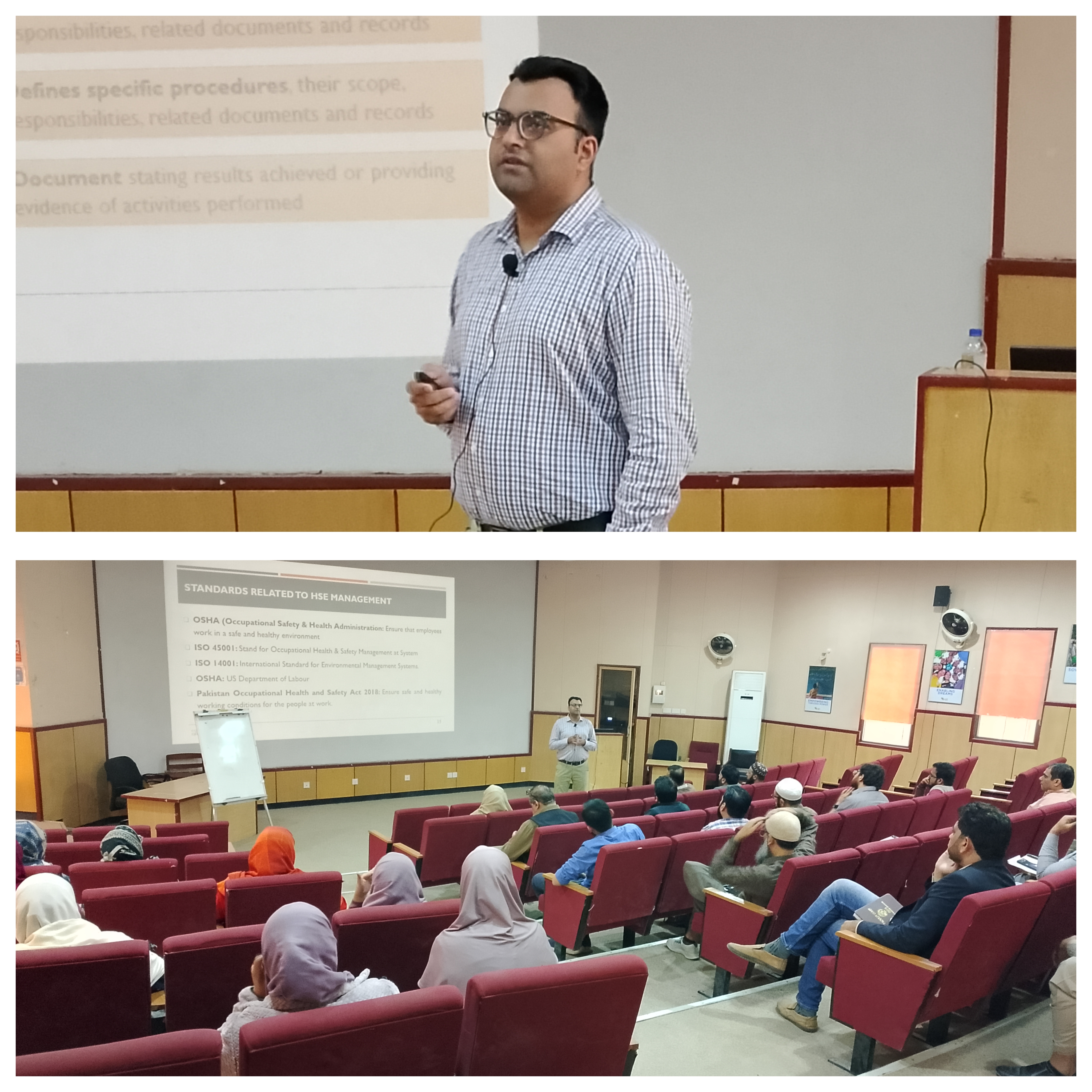 Dr. Tariq Rehman, (Dy. Director-II, QEC) and Dr.Muhammad Samiuddin, (Dy. Director-III, QEC) conducted a training on “Health, Safety and Environment Management” for Officers and Staff of various departments. This training programme is designed to equip participants with essential knowledge and practical skills in health, safety, and environmental management. It covers workplace safety practices, risk assessment, accident prevention, environmental protection, and compliance with HSE standards. The session was held on August 27, 2025..